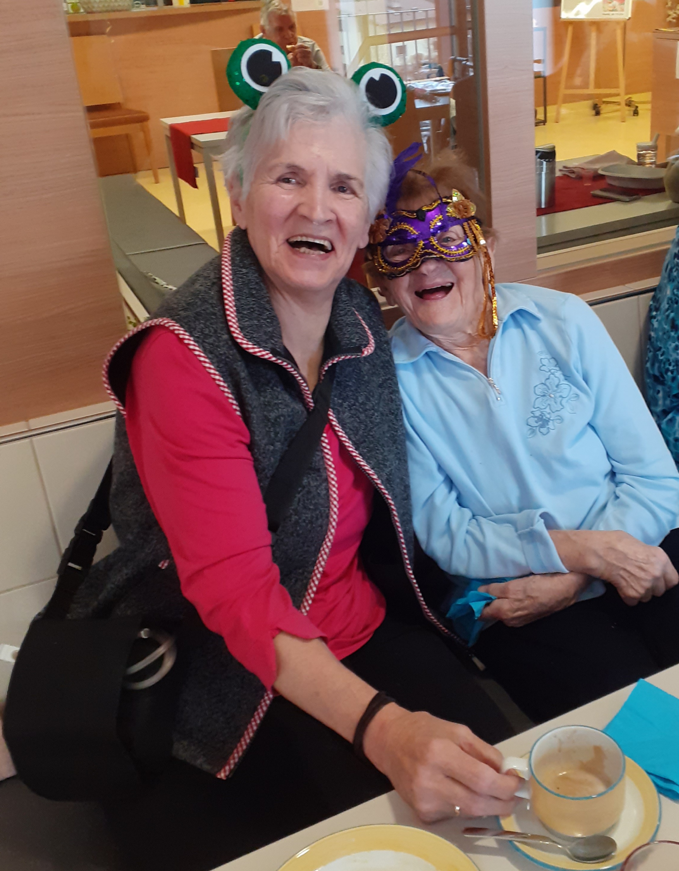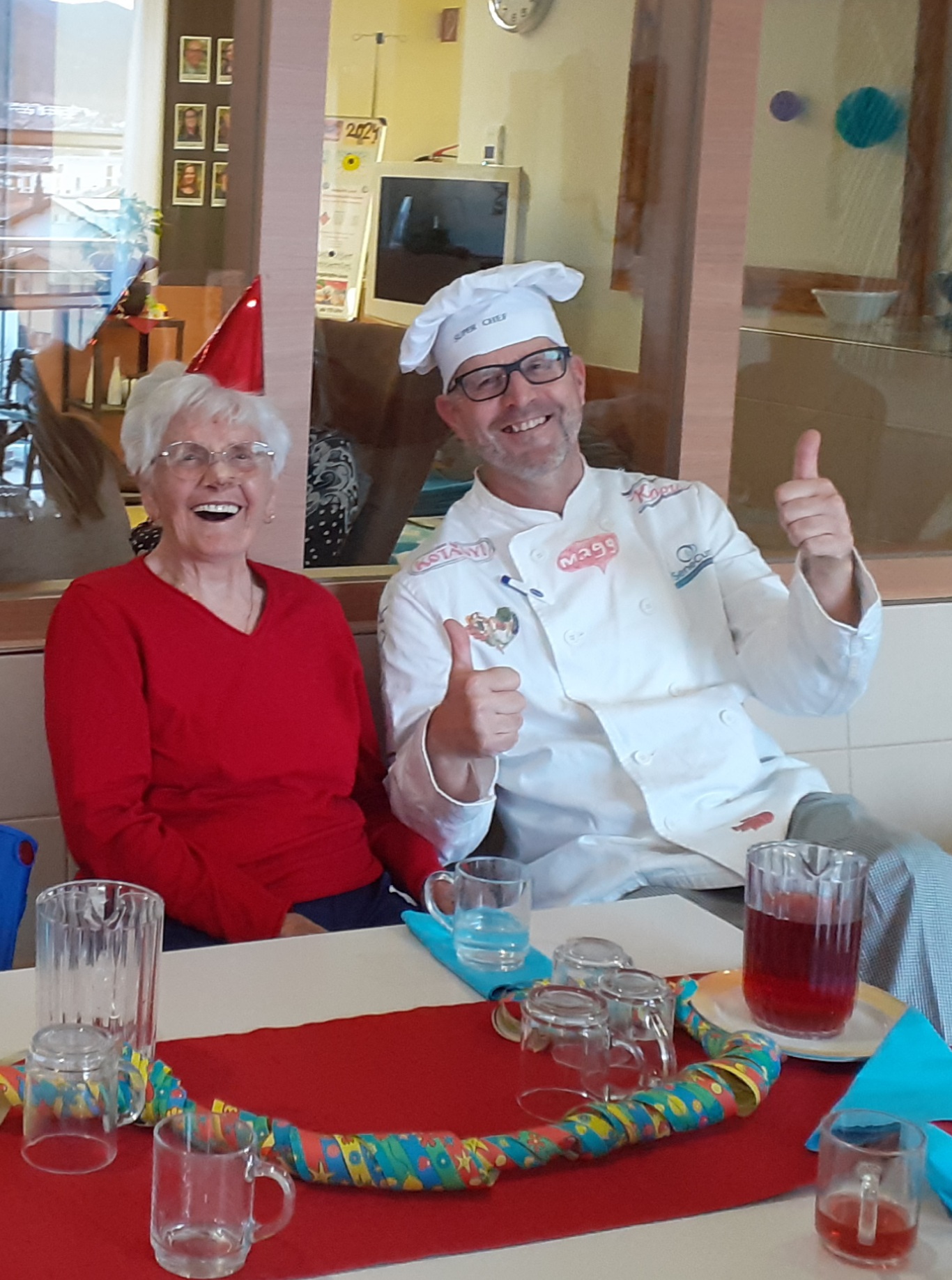 Pflegerin Maria und Pfleger Christoph haben im SeneCura Sozialzentrum Schwaz am unsinnigen Donnerstag zur Krapfenparty eingeladen. Ein heiteres Zusammenkommen an einem Tag, wo in der Stadt Schwaz alles Kopf steht. Dem nicht genug, stattete der Betriebskindergarten vom Krankenhaus Schwaz unseren Bewohner:innen einen Besuch ab und so kam es zu einem heiteren Generationentreffen. Es war ein Tag voller süßer Genüsse und Freude über das Kinderlachen des Besuchs.