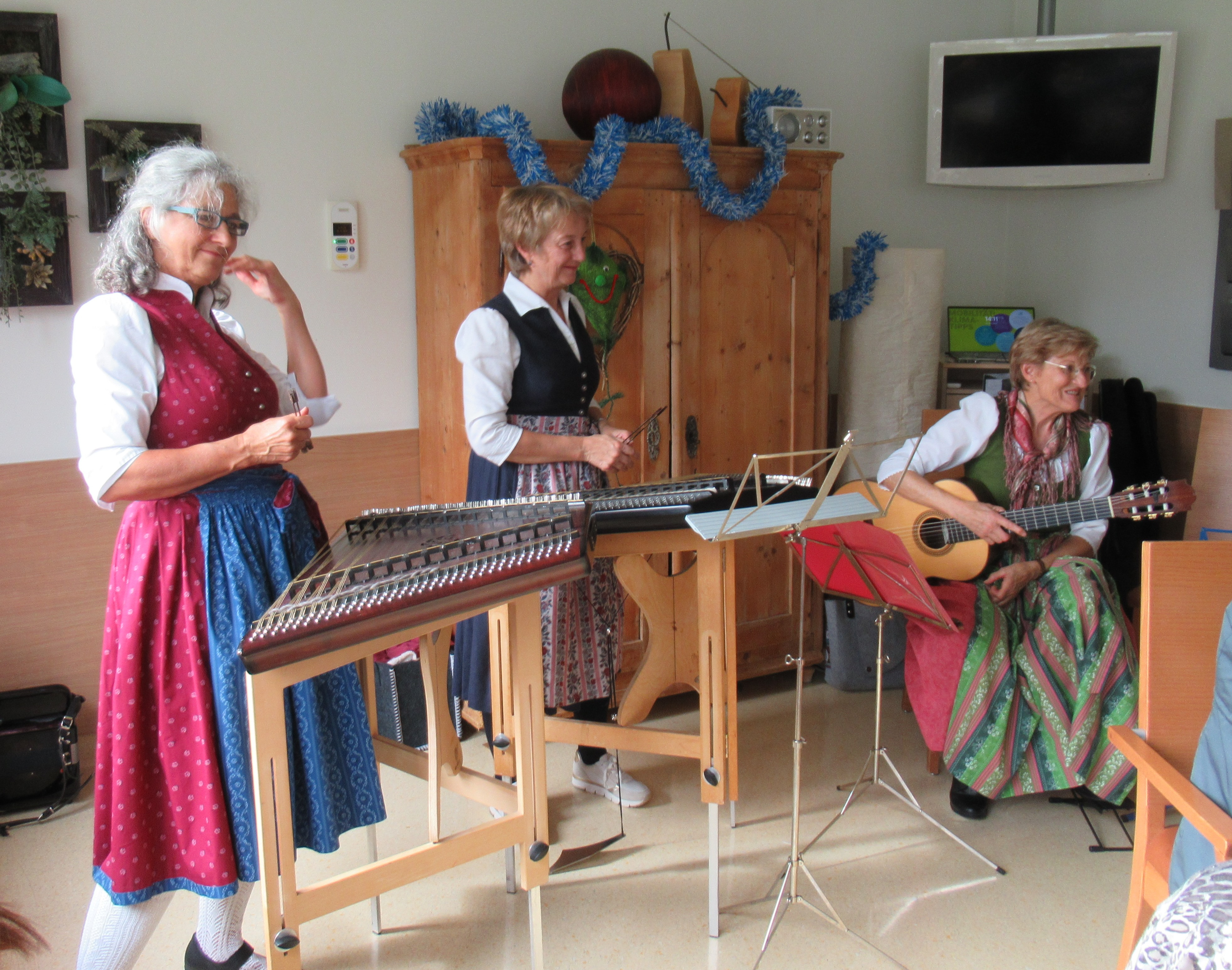 Der Herbst steht vor der Tür, die Wälder werden bunter, die Tage kürzer und es bricht die Zeit an, wo man sich wieder auf ein gemütliches Zusammenfinden in der warmen Stube freut. Diese schöne Stimmung wurde im SeneCura Sozialzentrum Schwaz eingefangen und bildete den Rahmen für ein zünftiges Oktoberfest. Ein Fest, das von dem liebevollen Engagement der hauptamtlichen Mitarbeiterinnen Manuela und Michaela und der großartigen Unterstützung vieler freiwilliger Helferinnen getragen wurde. So half Renate, eine pensionierte Mitarbeiterin, die uns aber als Zeremonienmeisterin und Dekorateurin erhalten blieb ebenso mit, wie die Enkelin von Bewohnerin Elisabeth die einen Kuchen beisteuerte. Bei so einem rauschenden Fest darf natürlich auch eine Live-Musik nicht fehlen und unser großer Dank richtet sich hier an Anni, Doris, Claudia und Maria von der Landesmusikschule Wörgl, die uns mit ihrer Stubenmusik musikalisch verwöhnten. Es war ein rundum gelungenes Fest, das Bewohnerin Traudi mit einem Satz auf den Punkt brachte: „Heute hatten wir alle wieder einmal das Gefühl, so richtig am Leben zu sein, einfach wunderschön.“ Auch Heimleiterin Andrea Ranacher freut sich: „Leider war es mir aufgrund einer Weiterbildung nicht möglich, am Fest selber teilzunehmen, aber als mir am Montag von den vielen schönen Erlebnissen berichtet wurde und ich mir die Fotos angeschaut habe, war ich einfach nur gerührt! Ich möchte mich daher bei allen Mitwirkenden aufs Herzlichste für die tolle Unterstützung und liebevolle Umsetzung bedanken!“