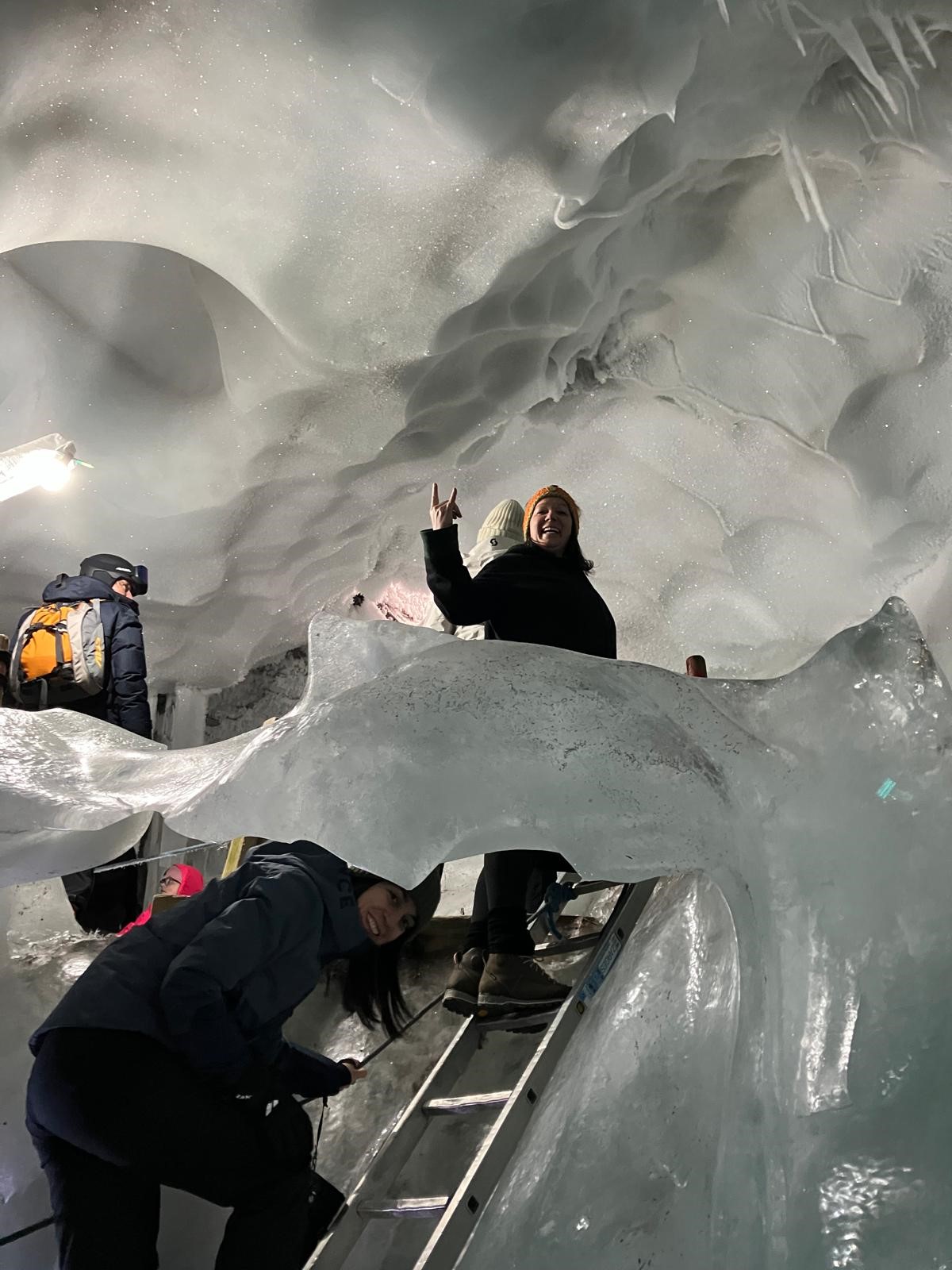 Die zweite Gruppe mit Teamleaderin Verena begaben sich in die spektakuläre Bergkulisse des Hintertuxer Gletschers. Zuerst ging es mit der Gondel bei traumhaften Wetter auf über 3.200 Meter Höhe, was an sich schon ein Highlight ist. Aber dies war nur der Ausgangspunkt für das Kernstück des Ausfluges nämlich die Besichtigung des Natur-Eis-Palast – ein wahrlich spektakuläres Naturwunder. Dementsprechend überwältigt waren auch die Fotos und Rückmeldung. „Ein absolutes Highlight, es war einfach nur ein traumhafter Tag und wir hatten so viel Spaß miteinander. Das war mein letzter Betriebsausflug und er wird mir ewig in Erinnerung bleiben“ berichtet Mitarbeiterin Erna, die nach zwei Jahren Verlängerung heuer in Pension geht.
