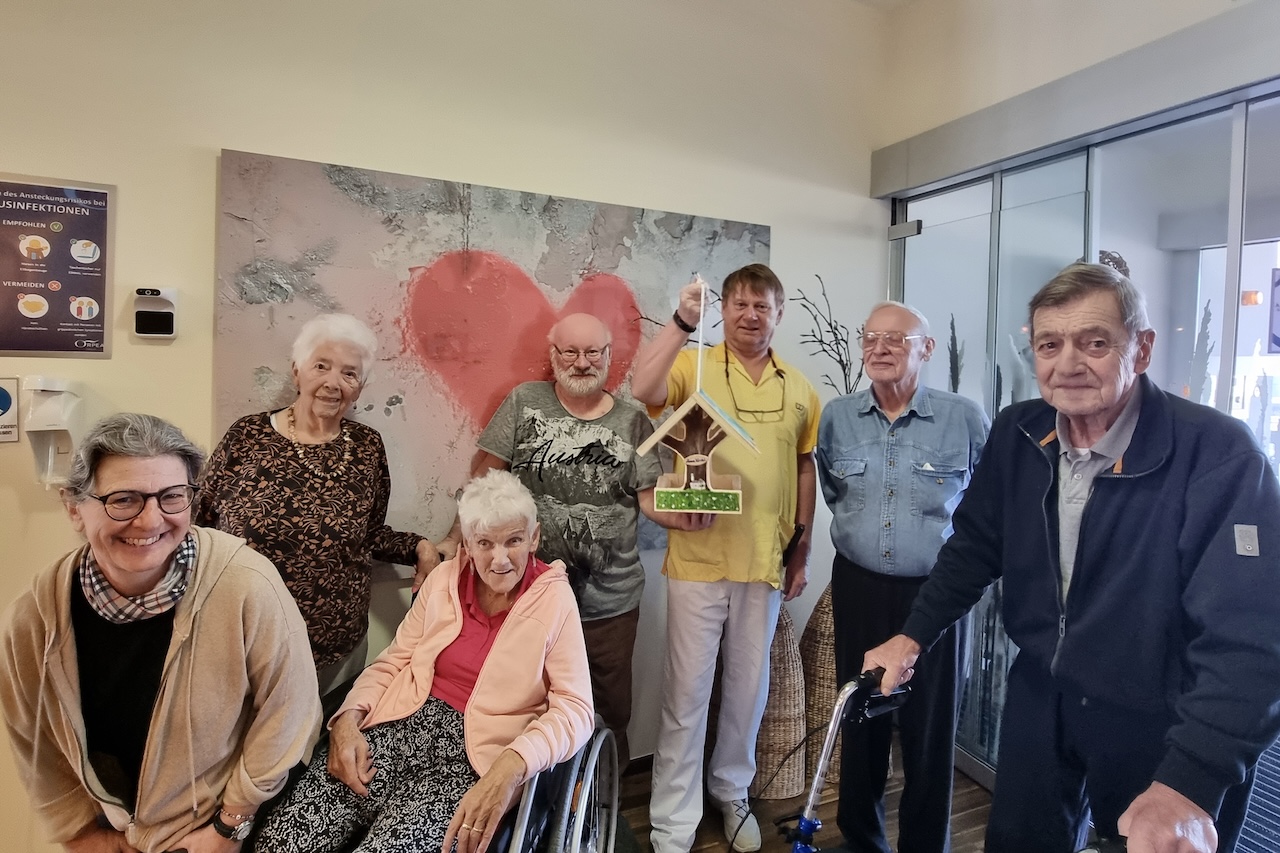 Die liebevoll gestalteten Vogelhäuser beeindruckten durch Detailreichtum und Einfallsreichtum. Von klassischen Holzhäuschen mit bunten Verzierungen bis hin zu architektonisch ausgeklügelten Vogelvillen war alles vertreten. Den ersten Platz sicherte sich das SeneCura Sozialzentrum Annakirchl, wo unter Anleitung der talentierten Künstlerin Birgit Tscheliessnig ein ganz besonderes Kunstwerk entstand: Gemeinsam mit den Bewohner:innen Paula Pockstaller, Regina Maier, Robert Tschon, Friedrich Reinders, Marion-Hans Maier sowie Pflegeassistent Roland Richter, Zivildiener Daniel Moser und Psychologin Astrid Plangger, wurde das Vogelhaus zu einem Ausdruck echter Naturverbundenheit. Die Bewohner:innen brachten ihre eigenen Ideen ein und lernten, diese gestalterisch umzusetzen – ein gemeinsamer Prozess, der nicht nur die Kreativität, sondern auch das Gemeinschaftsgefühl stärkte. „Das Projekt hat alle bewegt – es war kreativ, verbindend und hat unsere Naturverbundenheit wunderbar zum Ausdruck gebracht. Dass wir damit den ersten Platz geholt haben, freut uns natürlich riesig“, so Manuela Lagger, Hausleitung des SeneCura Sozialzentrums Annakirchl. „Es hat so viel Spaß gemacht. Wir haben gemeinsam etwas Schönes geschaffen, das bleibt“, ergänzt Bewohnerin Regina Maier freudig. Das fertige Vogelhaus steht nun an einem geschützten Platz im Garten mit Blick auf das SeneCura Sozialzentrum Annakirchl.